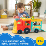 Toddlers can embark on wild railway adventures with the Little People® Big ABC Animal Train from Fisher-Price®. This large push-along toy train comes with 6 Little People® figures to ride the rails and features lights, sounds, music and phrases. As little conductors send their exotic passengers chugging around the living room, the Smart Stages® learning content introduces the alphabet, counting, colors and more.